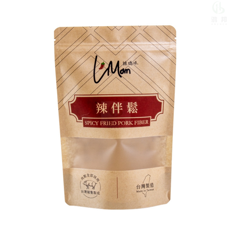 Printed resealable standing pouch zipper brown bag recyclable ziplock custom white stand up pouch with clear window